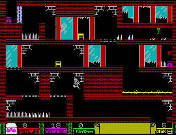 Ninja Secret Agent (Chapter II), an action/platformer game for ZX Spectrum. Developed with ZX Spectrum Game Maker.